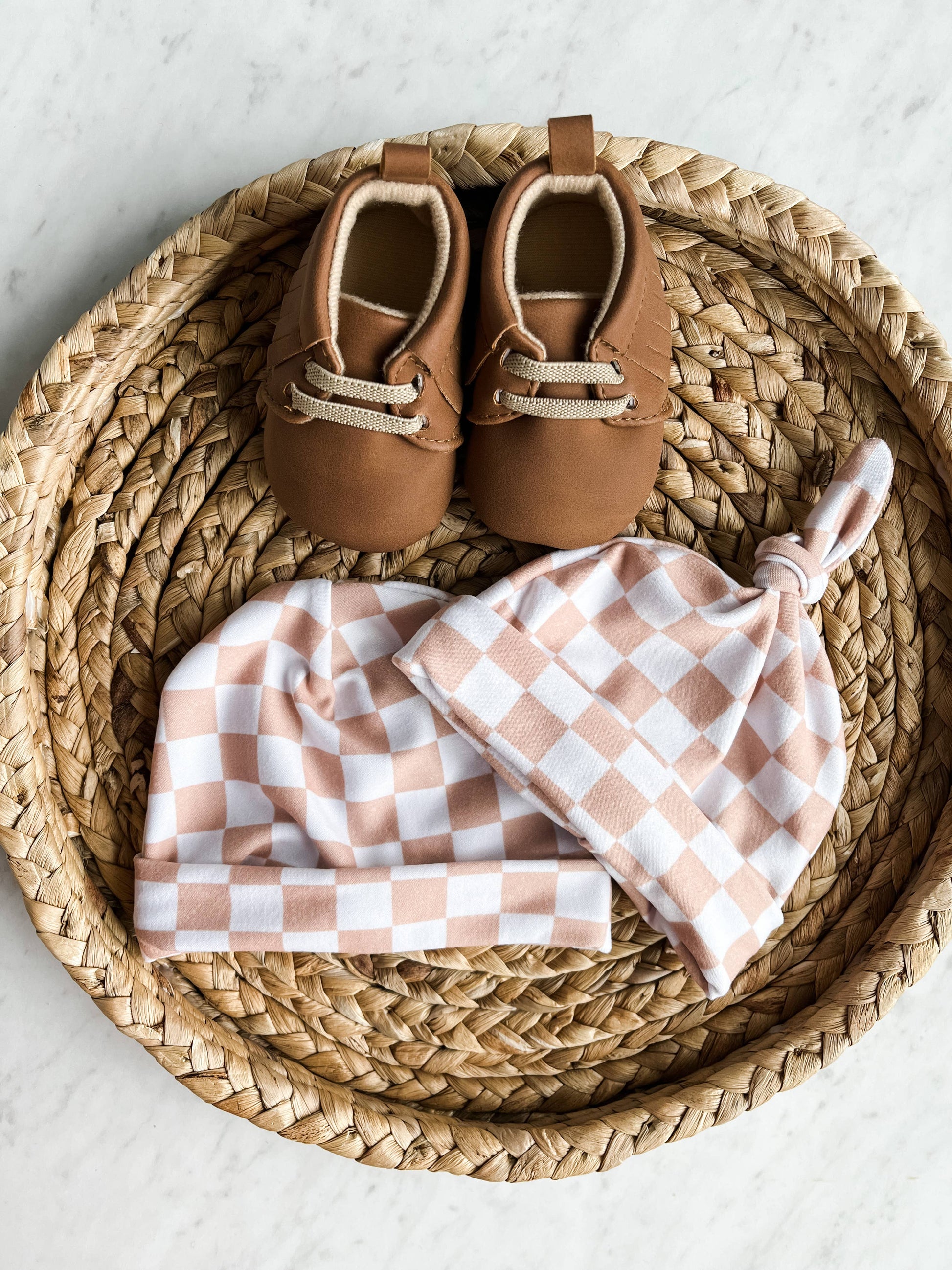 Gorro para bebé recién nacido - Cuadros anudados