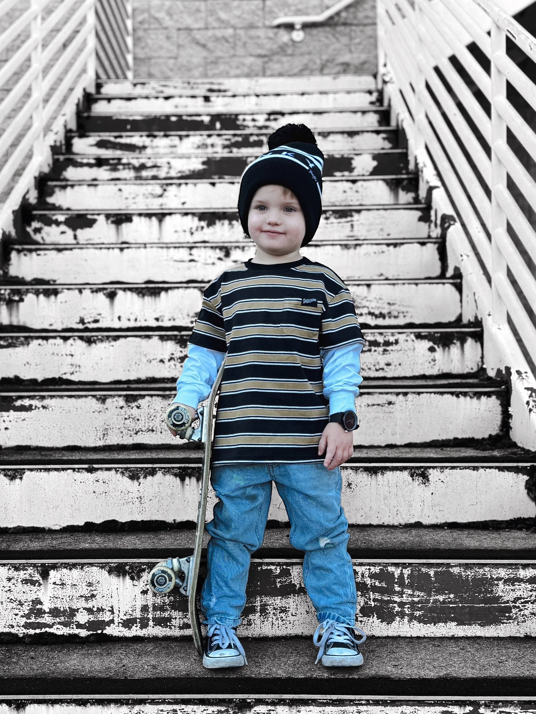 Get nostalgic with our 90’s Skate Vibes tee! Featuring a double layer look long sleeve design, this cool kids tee is perfect for bringing back the retro skate vibes. Made with high-quality materials for ultimate comfort and style.