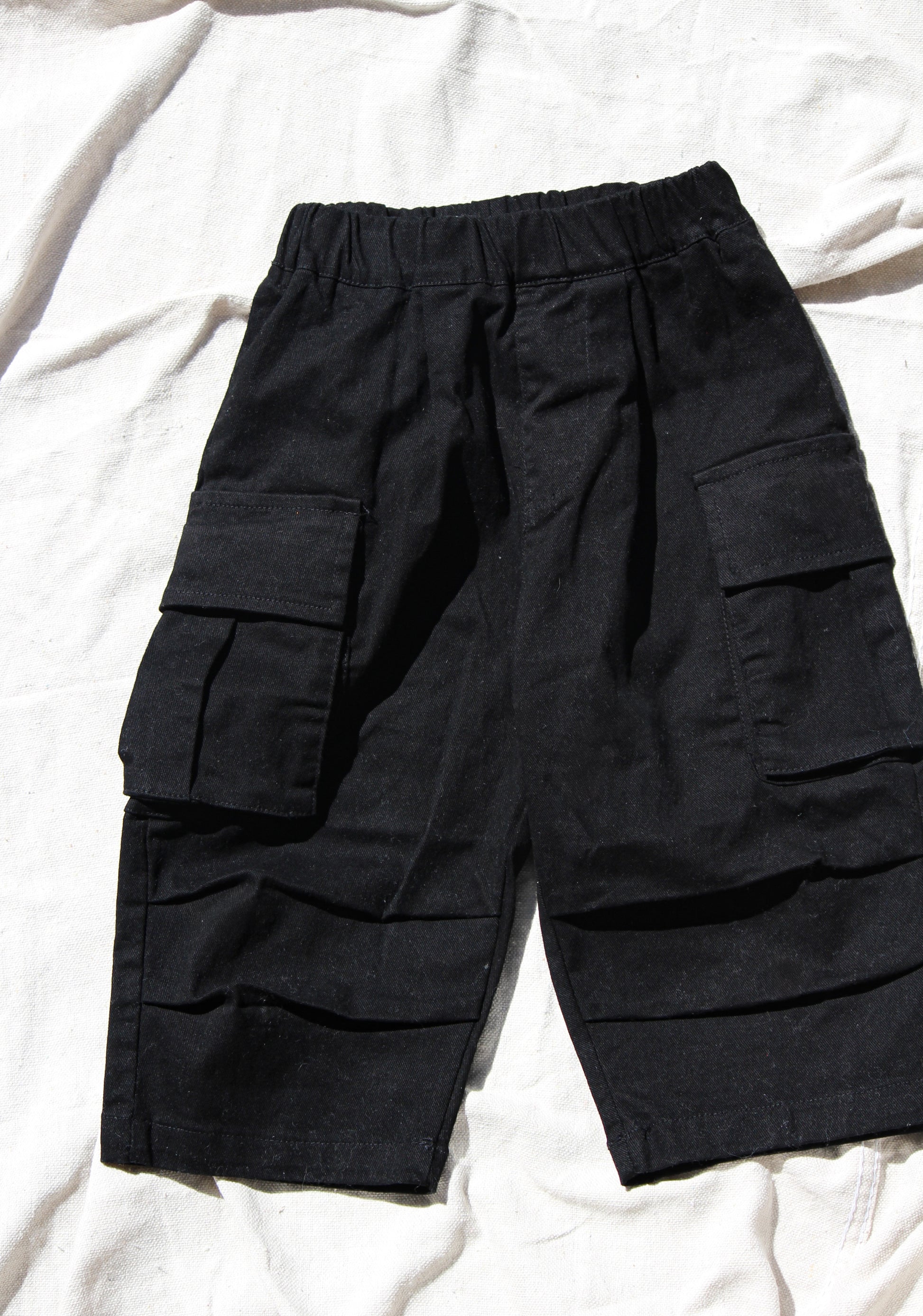 Keep your little one ready for every adventure with our black cargo pants. Made with comfort in mind, these pants feature an elastic waistband for an easy fit and roomy side pockets perfect for treasures, snacks, or just looking extra cool. Durable enough for playtime but stylish enough for everyday wear—these cargos are the ultimate mix of function and fun.