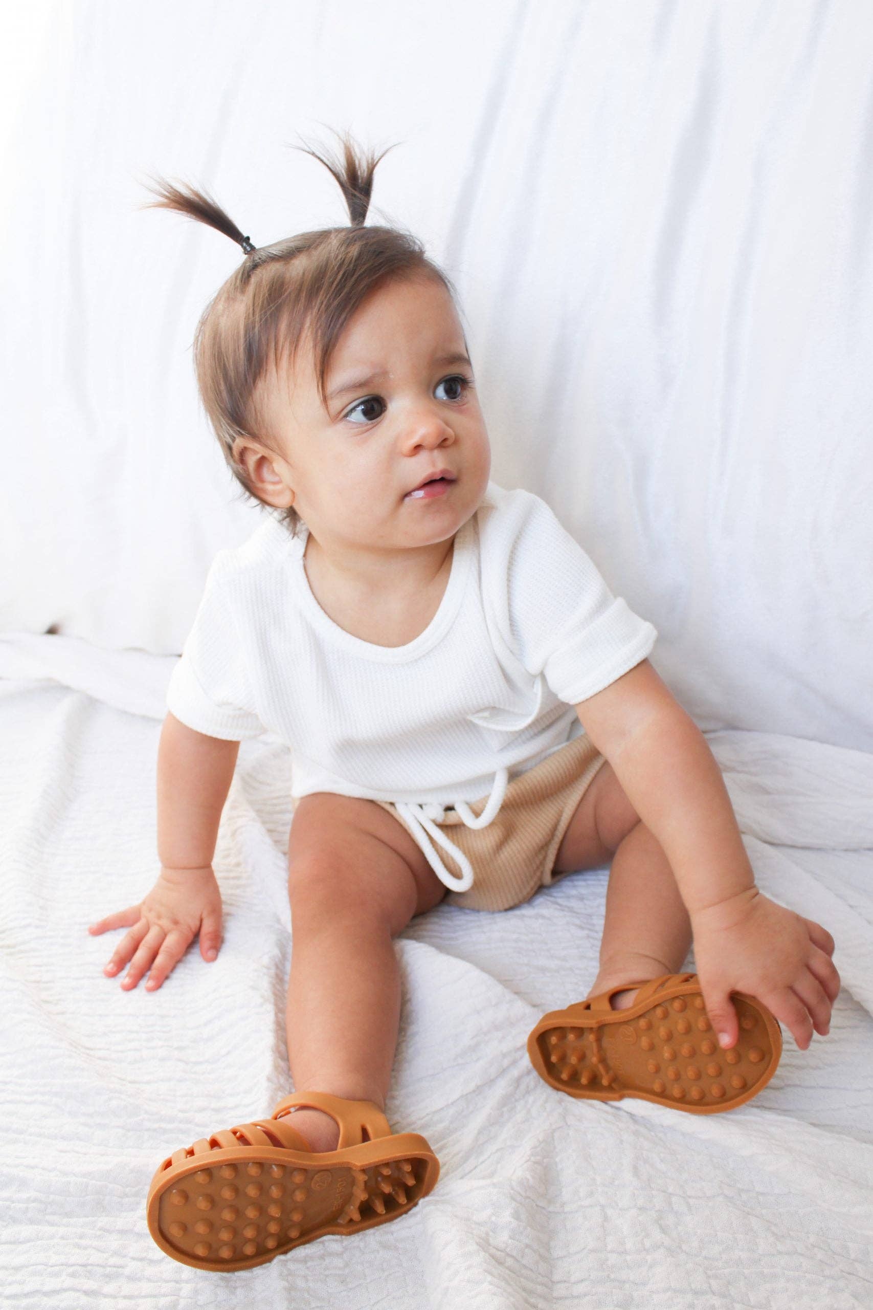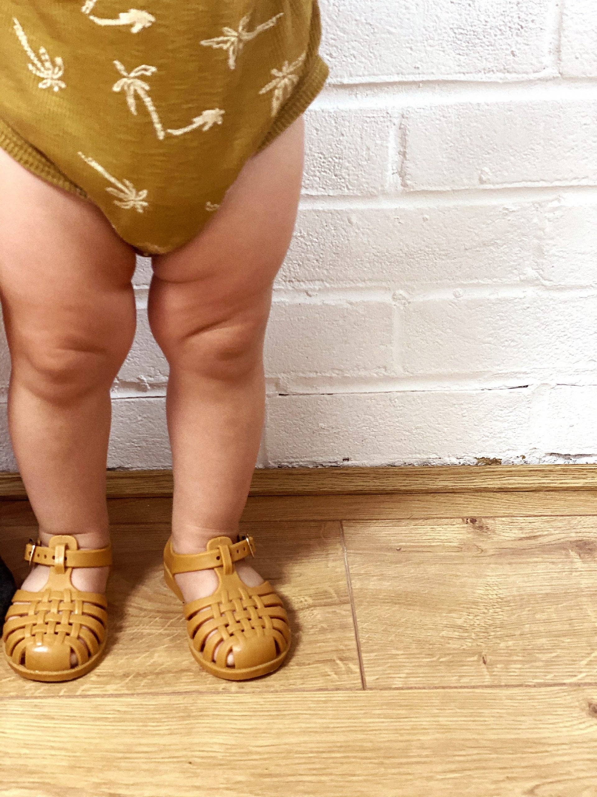 Incredibly soft, these flexible jelly sandals are perfect for your little ones feet. Adjustable buckle fastening and available in two beautiful colours. Please check measurements before ordering.