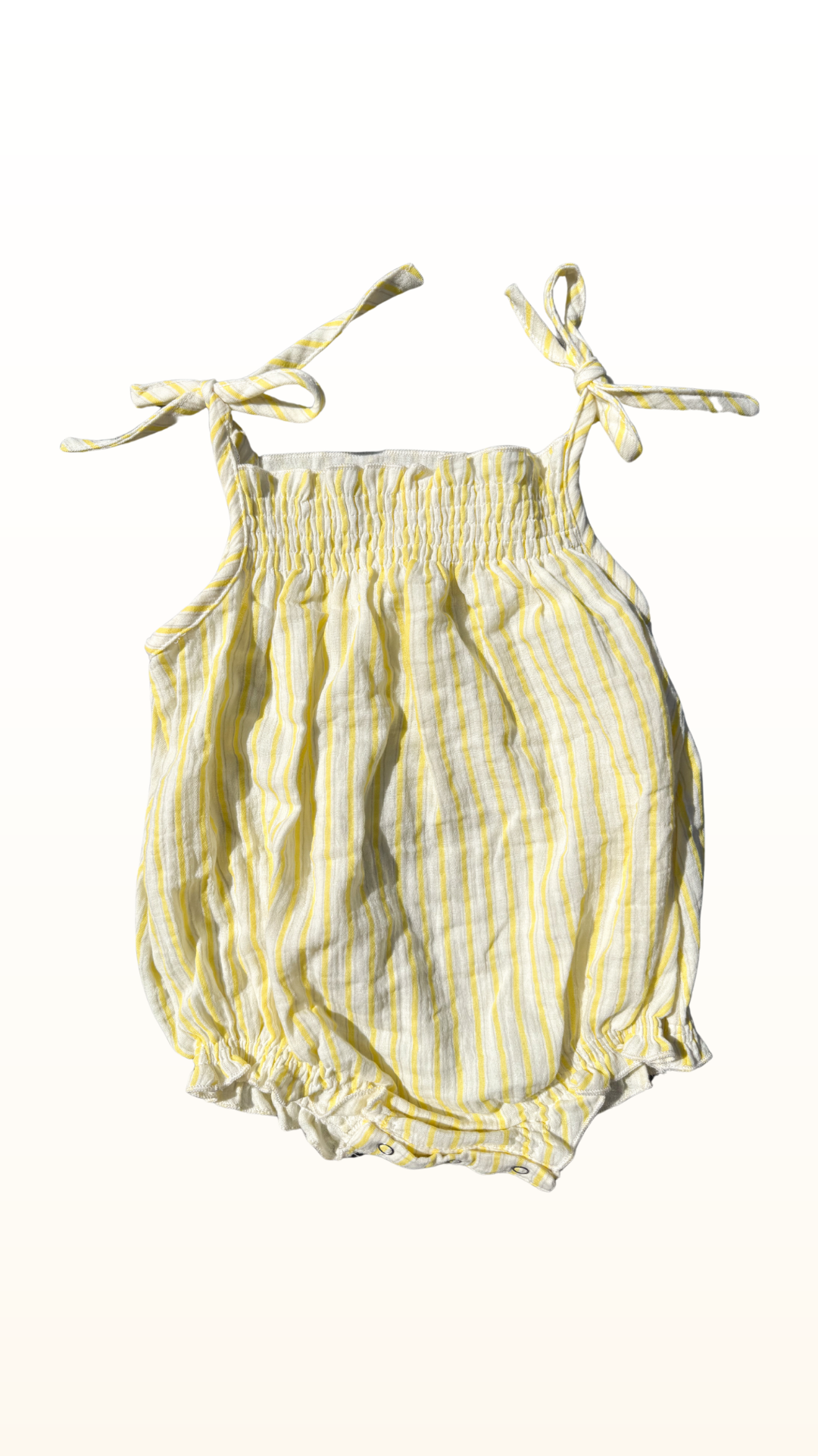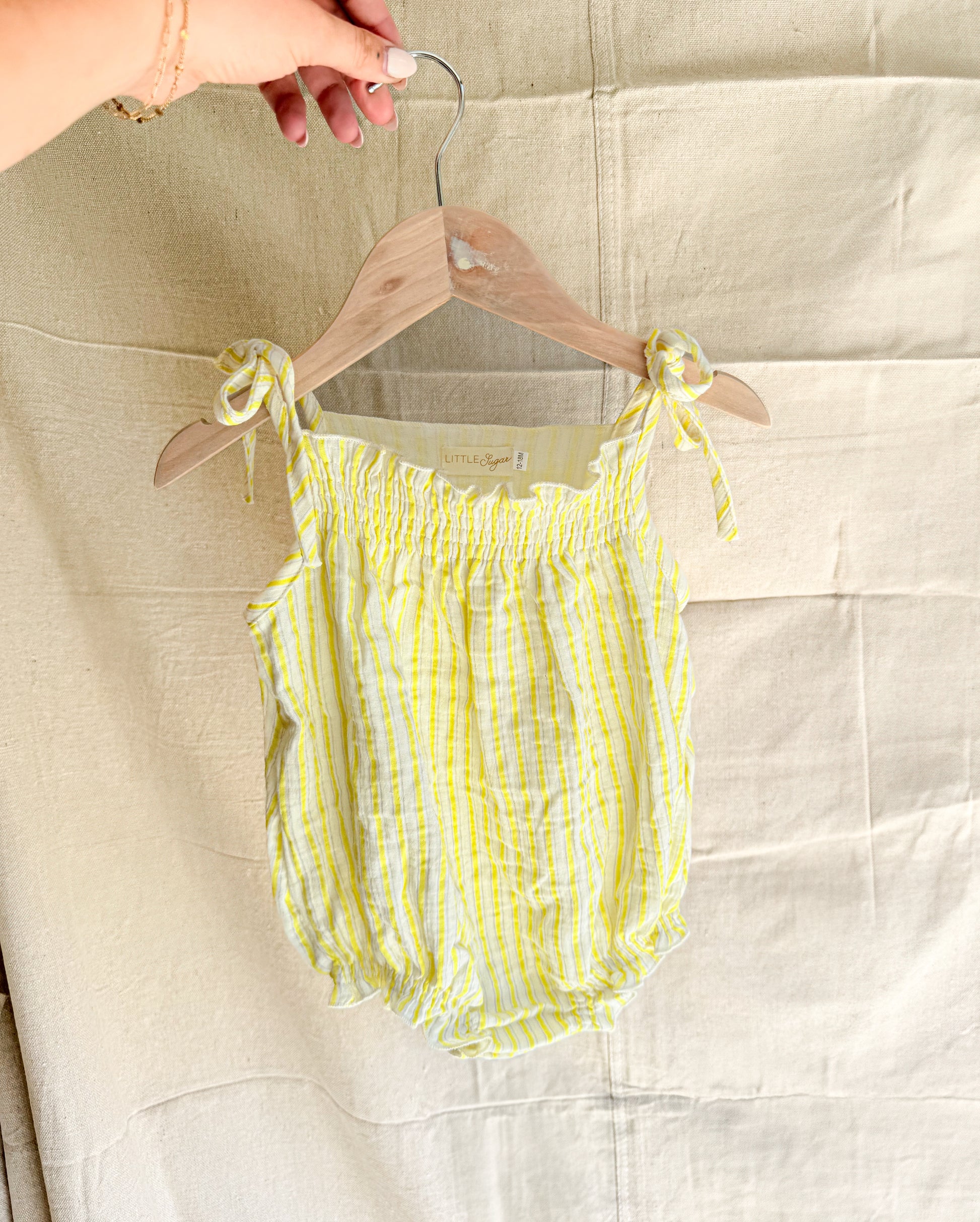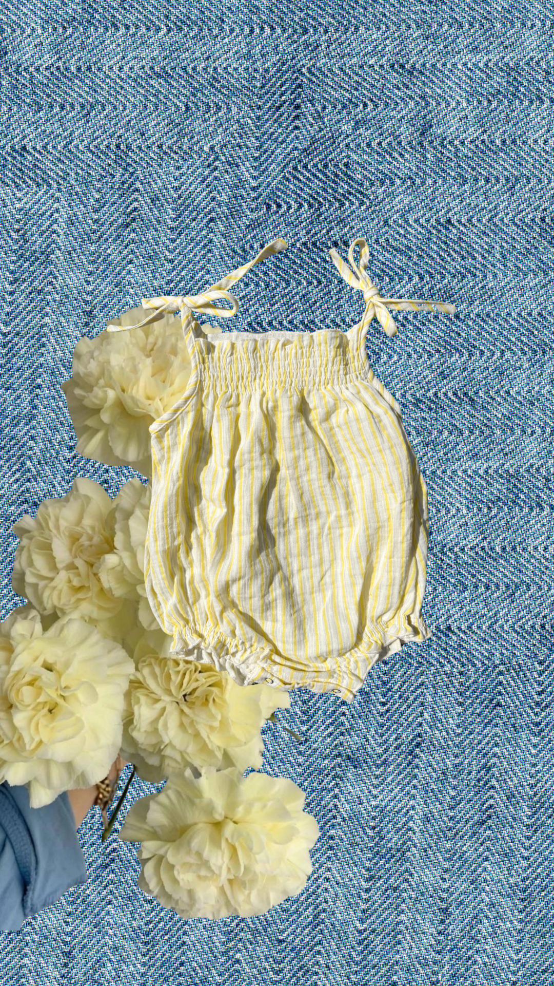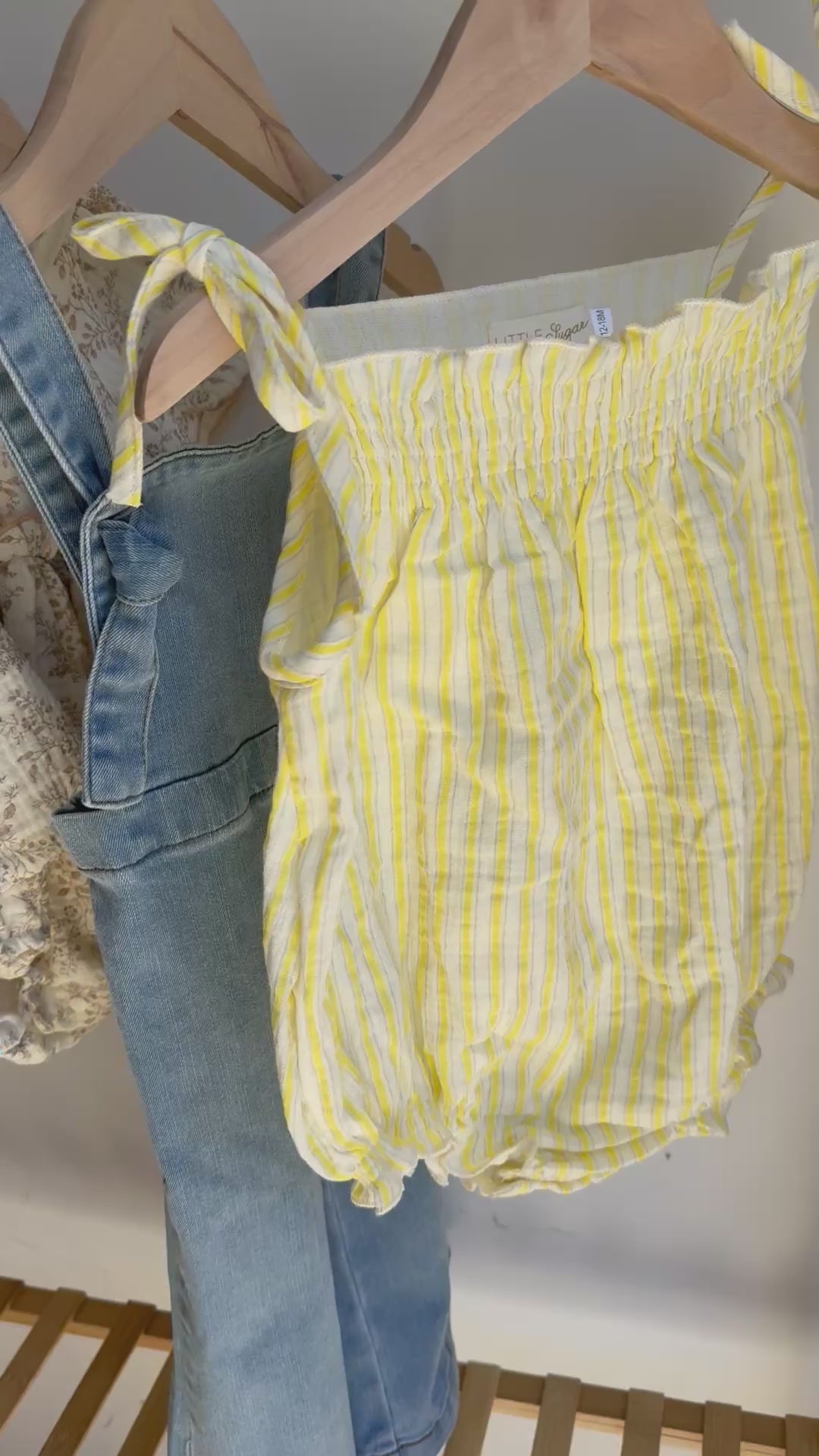 Introducing the Buttercup Bubble - the perfect summer romper with button snaps and adjustable straps for a comfortable fit. Made with lightweight material in a trendy yellow color, it's the ideal choice for warm weather style. Stay fashionable and cool in the Buttercup Bubble.
