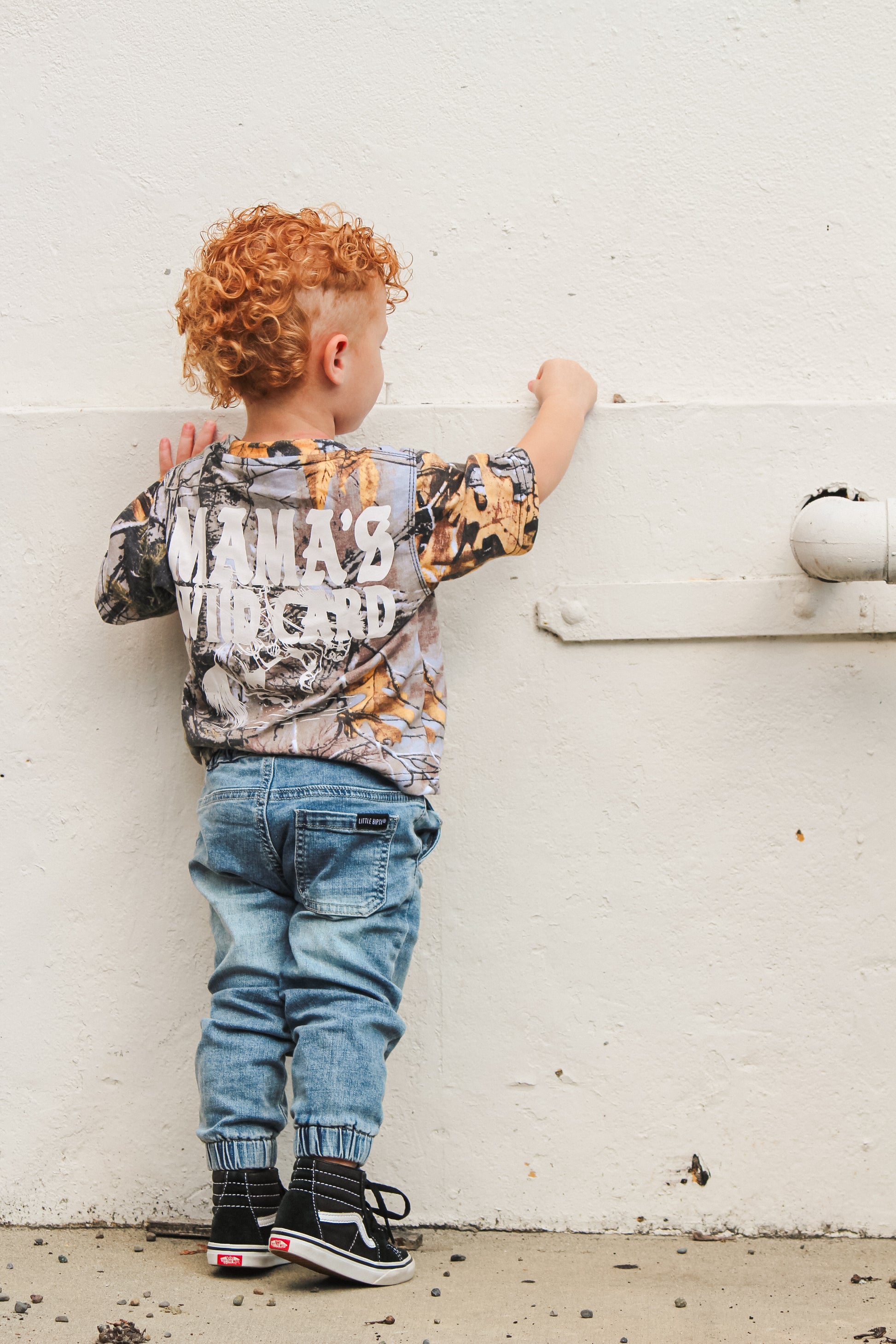 A boxy, slightly oversized fit that keeps things comfy while making a statement. Featuring our signature Mama’s Wild Card graphic across the back and a handy chest pocket up front, this camo-inspired tee is equal parts bold and laid-back. Perfect for layering or wearing on its own, it’s the go-to piece for mamas who do it all, their own way.