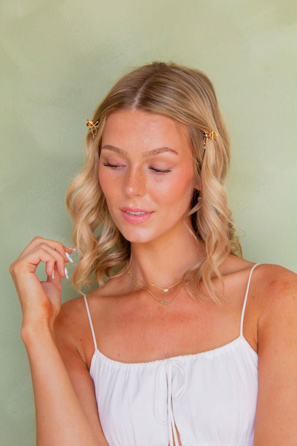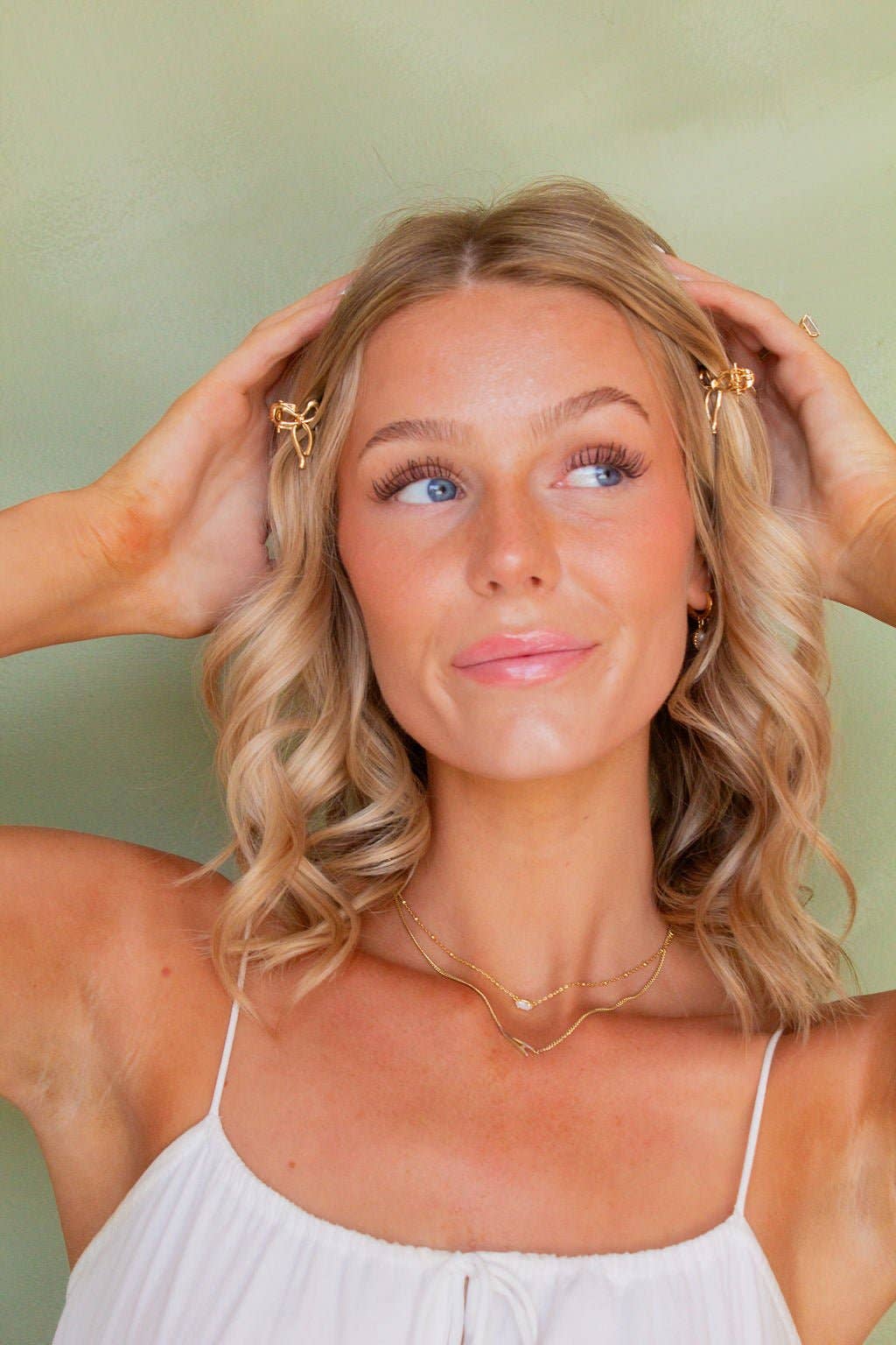 This 2-pack of bow claw clips is a must for your accessory bag! Our clips put a beautiful Andi touch on the hair clips you thought you knew. These claw clips feature the cutest little gold metal bows. Pair this with your favorite sweats, date night dress, or work fit!