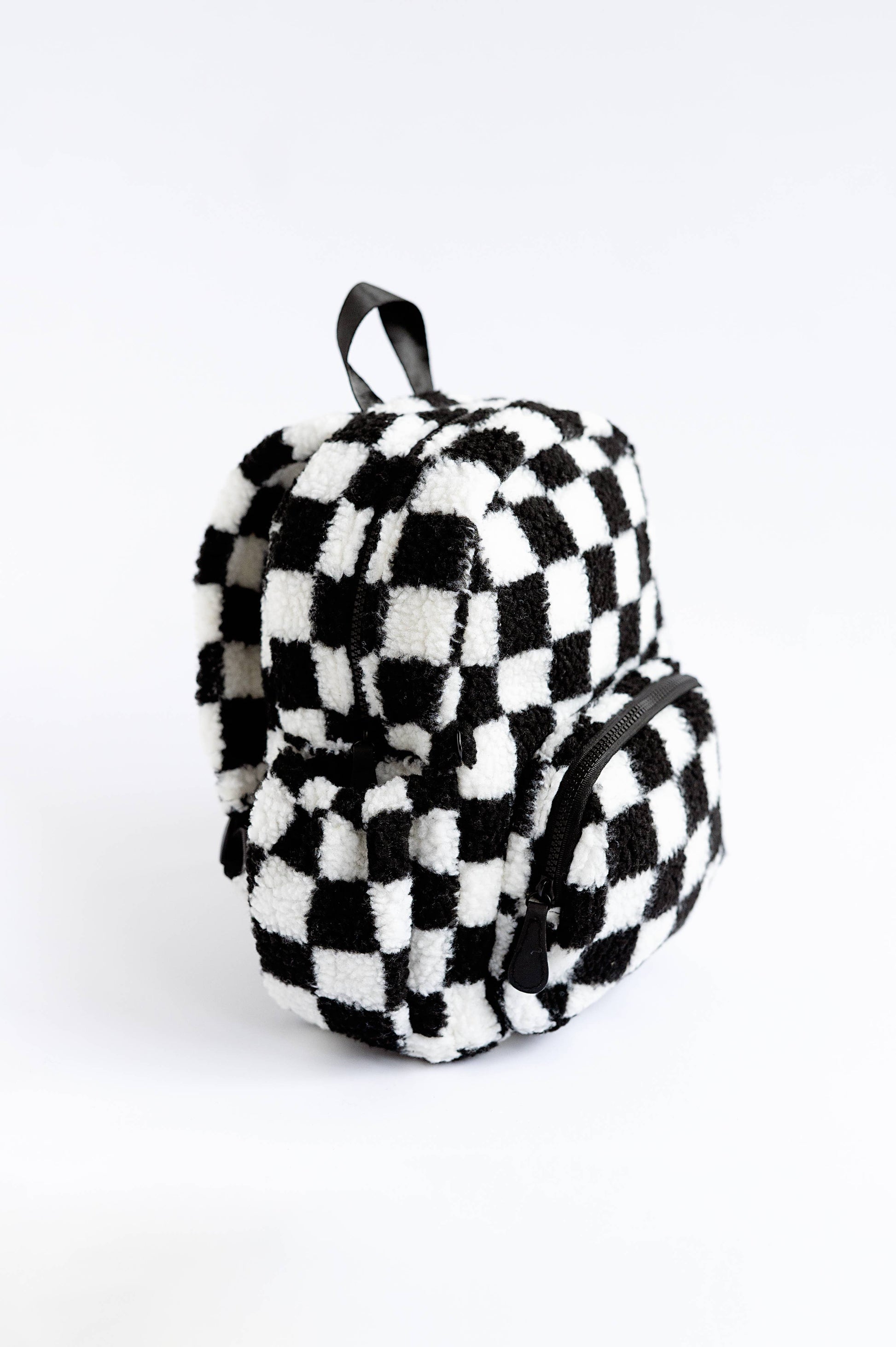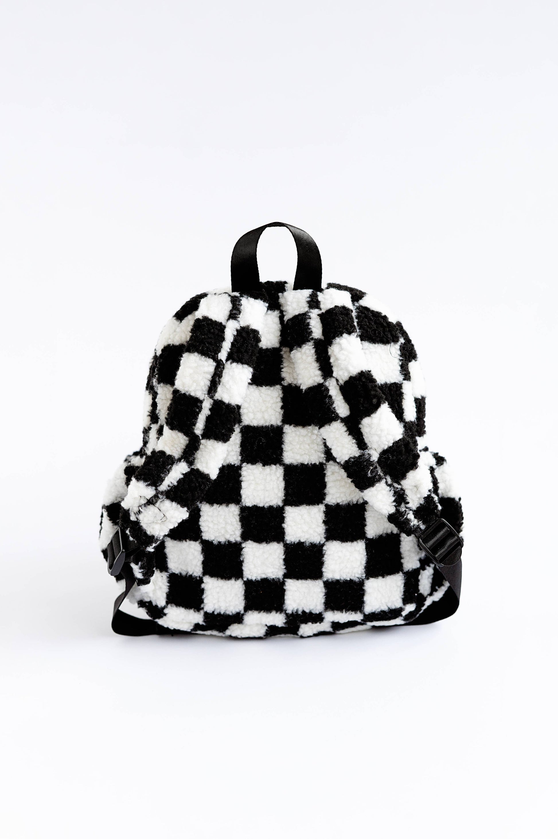 The Aspen Kids Mini Backpack- Sherpa Black and White Check
